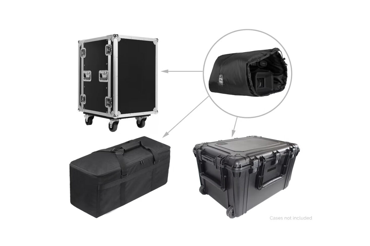 CAMERA-POUCHはビデオカメラ向けの大きなポーチです。キャリングケースと組み合わせて保護性を高めるほか、素早く取り出せる保護カバーとしても便利です。 ジッパーでポーチを大きく開くことができ、カメラを簡単に出し入れできます。 マットボックスを付けていても対応するように、片側が広がったデザインになっています。 開口部は巾着のようになっており、紐を引いて絞ることができます。 ※より大きなCAMERA-POUCHXLもございます。