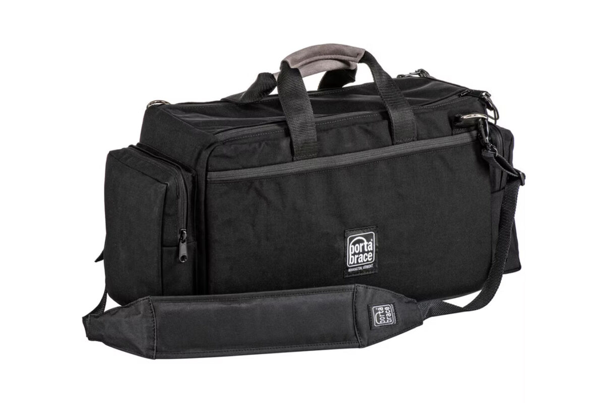 機材収納ケースです。メイン収納部のカバーはダブルジッパーで開閉が簡単。広々とした開口部は機材の出し入れがスムーズに出来ます。