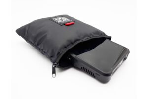 ファスナー付きの開口部を持つ、柔らかいクッション入りのポーチです。 小型の機材やアクセサリー、レンズ等を保護し、整理するのに適しています。