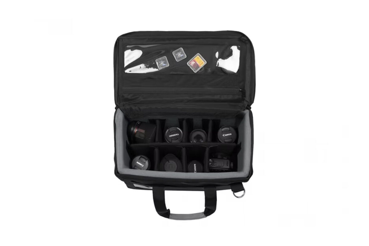LB-1Bは角ばった箱型の形状で、丈夫なフレームとパッドを備えたレンズバッグです。 仕切板が付属し、レンズを整理することができます。